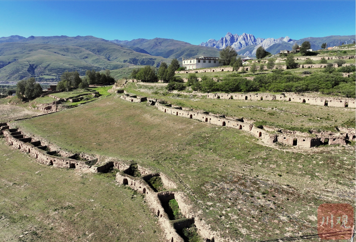 遺址坐落于317國道北側(cè)的布絨朗山,平均海拔3378.2米,這里是1951年十八軍搶修甘孜飛機場時的部隊駐地。走進遺址,每一處角落都在述說著十八軍當年在高原上的英雄壯舉。