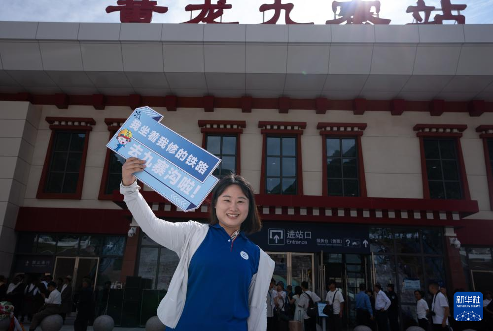8月30日,在黃龍九寨站,當?shù)厝罕姂c祝川青鐵路鎮(zhèn)江關(guān)至黃勝關(guān)段開通。新華社記者 江宏景 攝