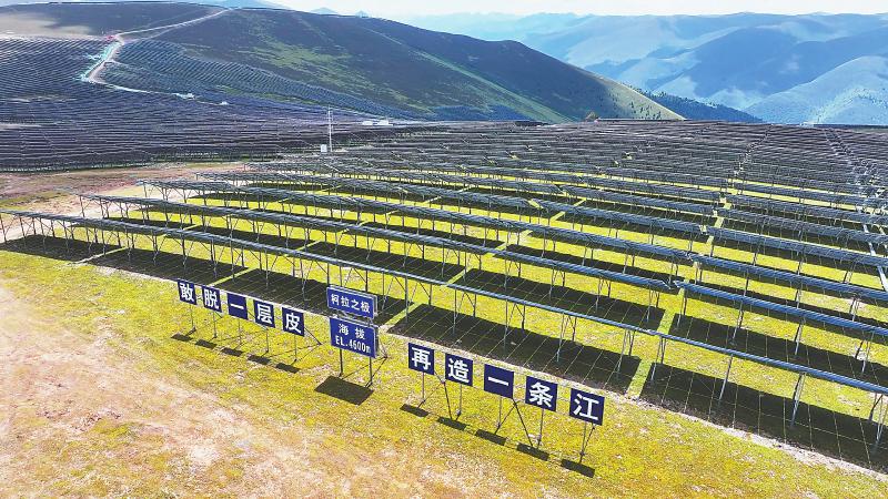 柯拉光伏電站的標(biāo)語牌。四川日報(bào)全媒體記者 黃瀟 攝