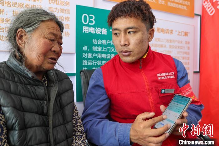 10月17日,在青海省海北藏族自治州剛察縣果洛藏貢麻村,久邁多杰在電力驛站登記便民服務(wù)記錄。中新社記者 薛蒂 攝