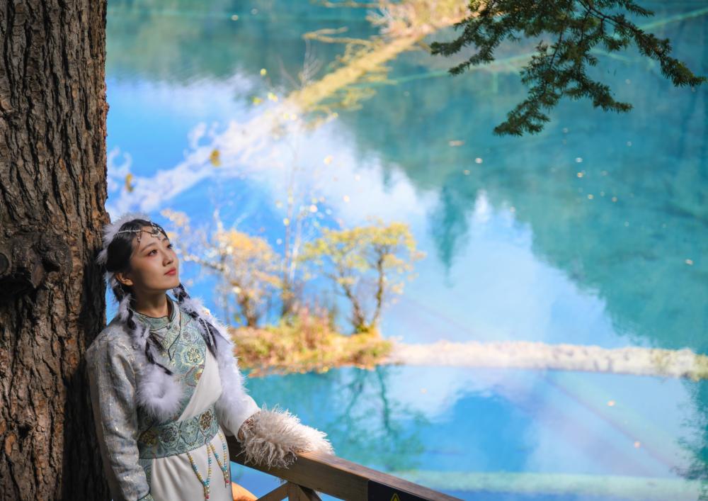 江蘇林女士的新婚蜜月之行便是來到九寨溝,她特意租了傳統(tǒng)藏族服飾、化上了特色妝容,站在五花海的棧道上,身后是碧藍湖水,身側(cè)是林影婆娑。“在這么美的景色之下穿上民族服裝,我想拍出來的照片一定很美!”