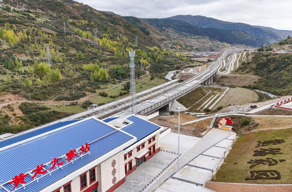 一列動車駛?cè)氪ㄇ噼F路黃龍九寨站。新華社記者 王曦 攝
