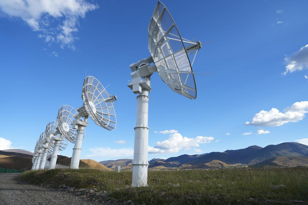 313臺(tái)天線隨太陽(yáng)的方位轉(zhuǎn)動(dòng),如同一朵朵巨大的向日葵。降央曲批說(shuō):“我心中的‘香格里拉’就是既有雪山草原又有高度發(fā)達(dá)的科技的地方。”