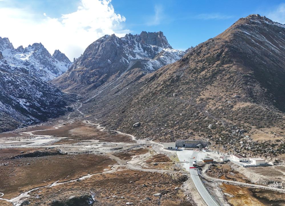 這是11月1日拍攝的317國(guó)道雀兒山隧道口(無(wú)人機(jī)照片)。新華社記者 王曦 攝