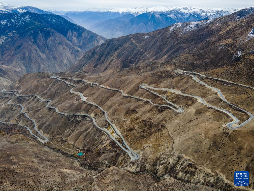 在西藏自治區(qū)昌都市八宿縣拍攝的國道318公路“怒江72拐”(11月7日攝,無人機照片)。新華社記者 儲加音 攝