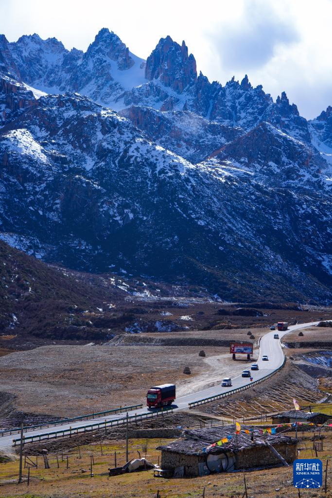 車輛行駛在四川省甘孜藏族自治州德格縣境內(nèi)的國道317公路上(11月1日攝)。新華社記者 沈伯韓 攝