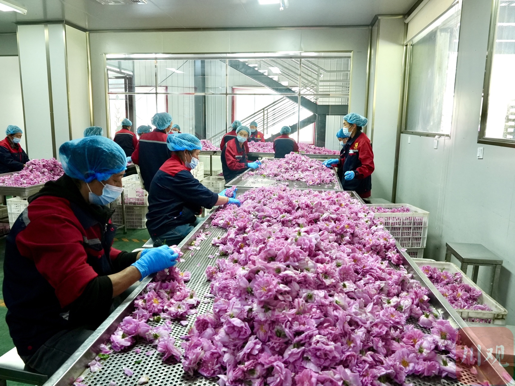 據(jù)了解,目前小金縣高原玫瑰種植面積已達1.5萬畝,年處理鮮花達1820噸,形成了集種植、采摘、加工、銷售為一體的全產(chǎn)業(yè)鏈。帶動全縣13個鄉(xiāng)鎮(zhèn)、46個村、玫瑰種植戶3000余戶脫貧致富。近年來,蘋果的銷售模式由傳統(tǒng)銷售型向電商銷售型轉(zhuǎn)變,蘋果單價從2元/斤提升至6元/斤,蘋果產(chǎn)業(yè)收入較2019年實現(xiàn)200%增長,帶動446戶、1405名農(nóng)民人均增收2300元以上。