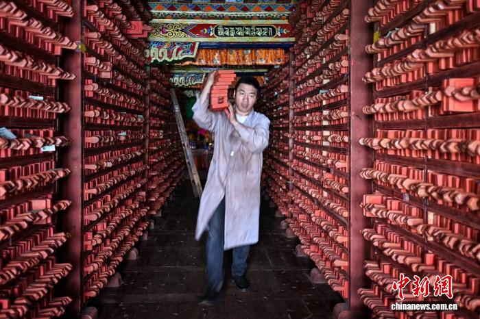 為守護(hù)這些珍貴印版,印經(jīng)院的日常維護(hù)工作從不松懈。每年工作人員都會(huì)對(duì)20余萬(wàn)塊院藏古舊印版進(jìn)行洗版、晾曬、供油等維護(hù)。遇到字體模糊、磨損的印版,70歲的國(guó)家級(jí)非物質(zhì)文化遺產(chǎn)代表性項(xiàng)目傳承人彭措澤仁便會(huì)帶領(lǐng)工匠們仔細(xì)校對(duì),發(fā)現(xiàn)磨損、錯(cuò)誤后,便用刻刀小心剜下磨損、錯(cuò)誤部分,重新刻上正確字符鑲嵌上去。在他們的努力下,印經(jīng)院的印版雖歷經(jīng)歲月,卻依然能正常使用,持續(xù)發(fā)揮著文化傳承的作用。
