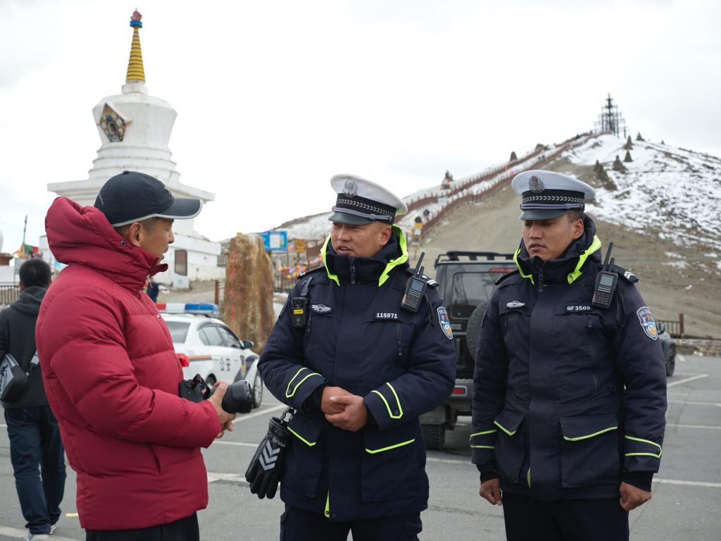 “‘二臺(tái)子’那個(gè)彎道背陰,冰還沒(méi)化,要把警車開到路上去提醒?!?885’彎急,要多注意。‘小壩子’要守兩個(gè)人,提醒車子一定不能占道停在路上!”四郎多吉在對(duì)講機(jī)里“排兵布陣”。