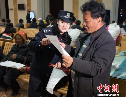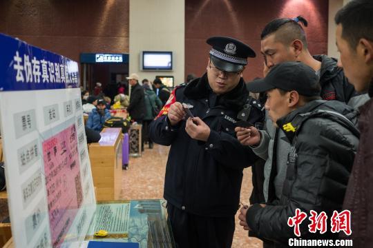 拉薩鐵路公安處民警為旅客講解如何識別假火車票。 何蓬磊 攝
