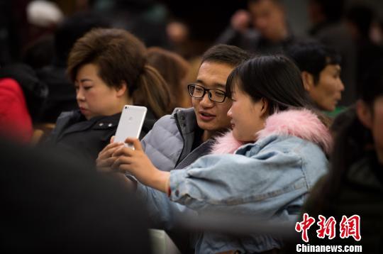 旅客在候車室合影。 何蓬磊 攝
