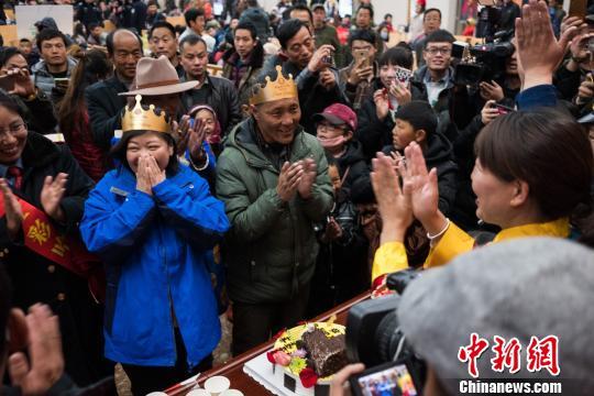 2月1日,拉薩火車站在候車室為兩名旅客慶祝生日。 何蓬磊 攝
