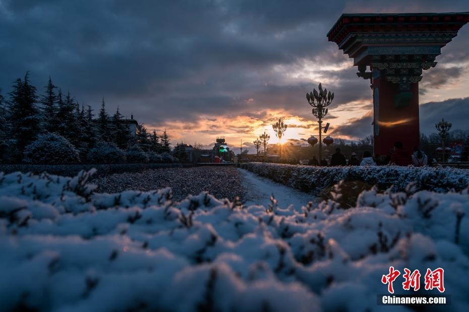 3月10日凌晨時(shí)分,雪域“圣城”拉薩的天空飄起片片雪花,迎來了今年的又一場(chǎng)降雪。3月的春雪為拉薩披上一層“薄紗”,銀裝素裹景色迷人。圖為雪后的拉薩迎來日出。 文/曾嘉 圖/何蓬磊