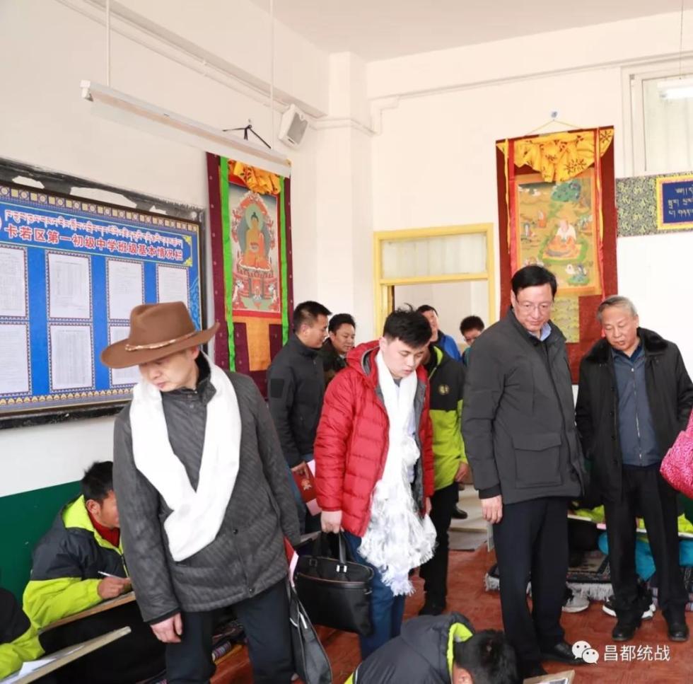 調(diào)研期間,金志國一行先后前往強(qiáng)巴林寺、煙多寺了解寺廟維穩(wěn)工作情況,卡若區(qū)一中考察嘎瑪嘎赤唐卡繪畫班,煙多鎮(zhèn)察俄村調(diào)研駐村工作,察雅縣吉塘鎮(zhèn)考察吉塘廣東異地扶貧搬遷點,聽取察雅縣委、縣政府關(guān)于當(dāng)前維穩(wěn)工作、寺廟管理工作、民族團(tuán)結(jié)工作、扶貧搬遷工作等情況匯報,前往昌都市維穩(wěn)指揮部,了解當(dāng)前維穩(wěn)工作情況,前往市博物館了解昌都?xì)v史文化保護(hù)和民族團(tuán)結(jié)創(chuàng)建工作。