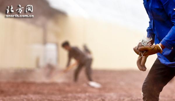 由于青藏高原土地薄砂石多,翻修后還得用手把土地里的石塊篩檢出來