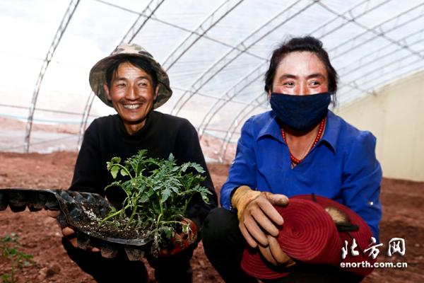 57歲的多嘎,近一個多月可忙壞了,他是昌都卡若區(qū)卡若鎮(zhèn)左巴村的村長,這一個月,他又是幫忙搭建節(jié)能溫室,又是跟著天津來的技術(shù)指導(dǎo)學(xué)習(xí)蔬菜水果種植。多嘎手里捧著的種苗,那可金貴著呢,是由支農(nóng)專家千里迢迢從天津帶來的。