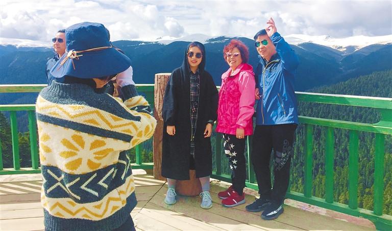進入6月,天氣轉(zhuǎn)暖,林芝旅游市場逐漸升溫,大峽谷、南伊溝、魯朗林海等旅游景點的游客明顯增多。與此同時,林芝市各縣區(qū)、各旅游景區(qū)、賓館酒店也加大協(xié)調(diào)對接力度,認真做好接待服務(wù)工作,進一步完善全市公共服務(wù)設(shè)施,積極改善產(chǎn)品和服務(wù)供給,讓游客“進得來、留得住、玩得好”。圖為游客在魯朗林海景區(qū)拍照。記者 潘璐 攝