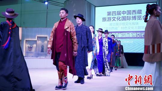本屆藏博會展覽還有服飾文化節(jié)展示活動。圖為9月8日,模特穿著創(chuàng)新的藏裝走T臺。 江飛波 攝