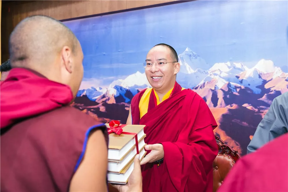 出版單位向西藏自治區(qū)部分寺院代表贈送《歷世班禪文集》。