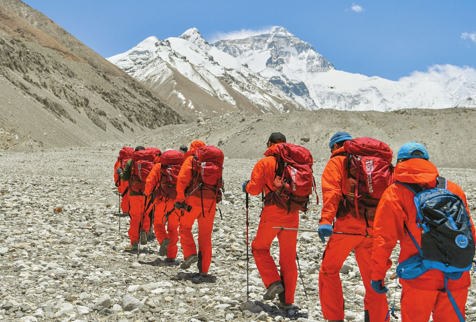 5月16日,2020珠峰高程測量登山隊從珠峰大本營出發(fā)。新華社發(fā)