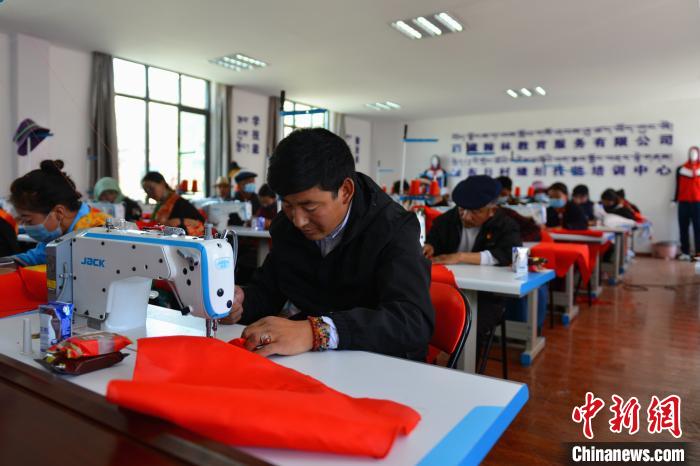 近日,中新網記者在現場看到,安置點民眾正踩著電動縫紉機縫制紅領巾?!澳撩駛冎熬陀凶灾埔路牧晳T,上手比較快,只需十多天培訓便可以上崗?!蔽鞑睾擦纸逃沼邢薰究偨浝硖K龍說,公司培訓的第一批41位牧民已經結業(yè)上崗,第二批正計劃招募中。