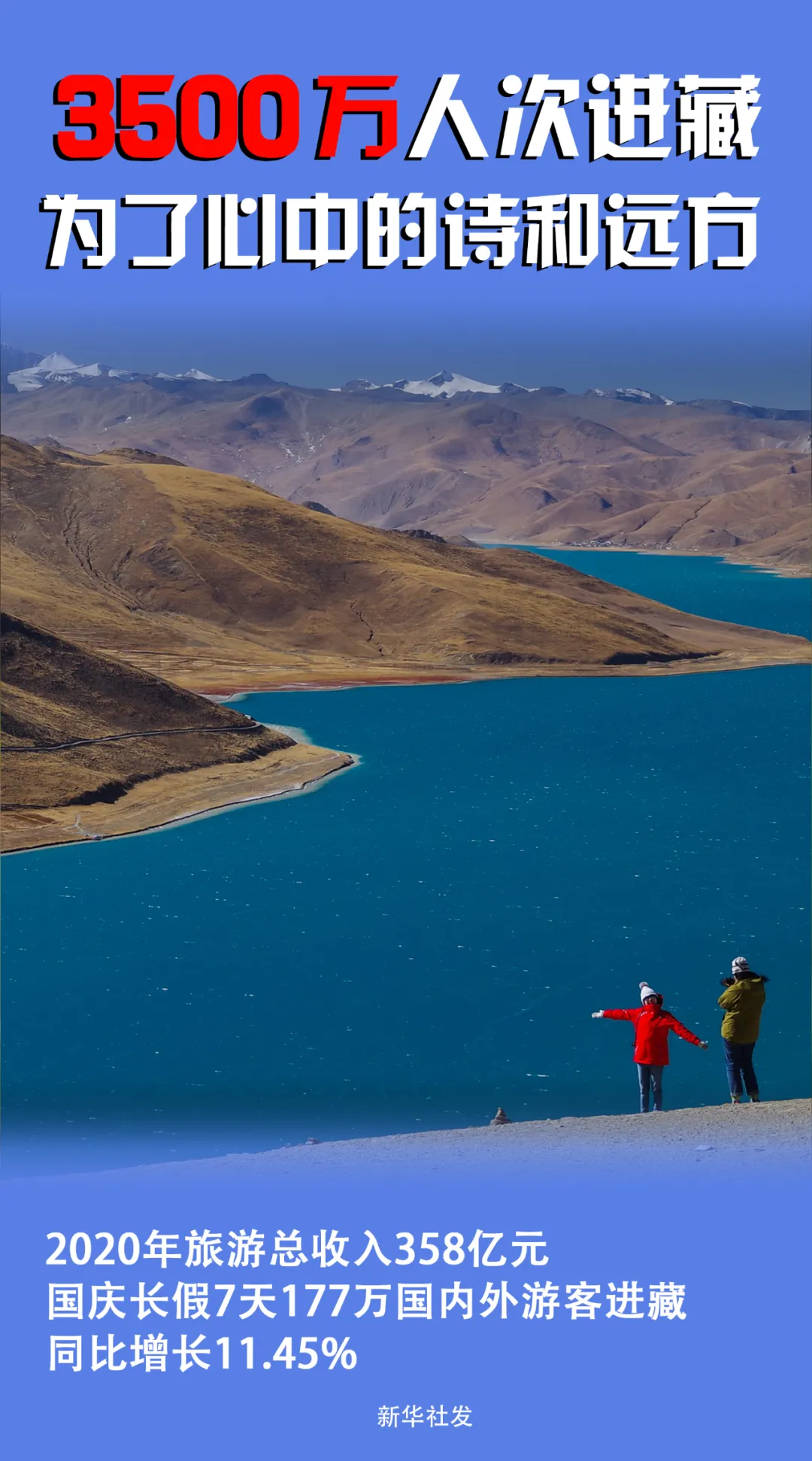 2020年,西藏共接待國內(nèi)外游客3500萬人次,實(shí)現(xiàn)旅游總收入358億元。當(dāng)年國慶長假前7天,共接待國內(nèi)外游客177.46萬人次,同比增長11.45%;實(shí)現(xiàn)旅游收入9.35億元,同比增長14%。