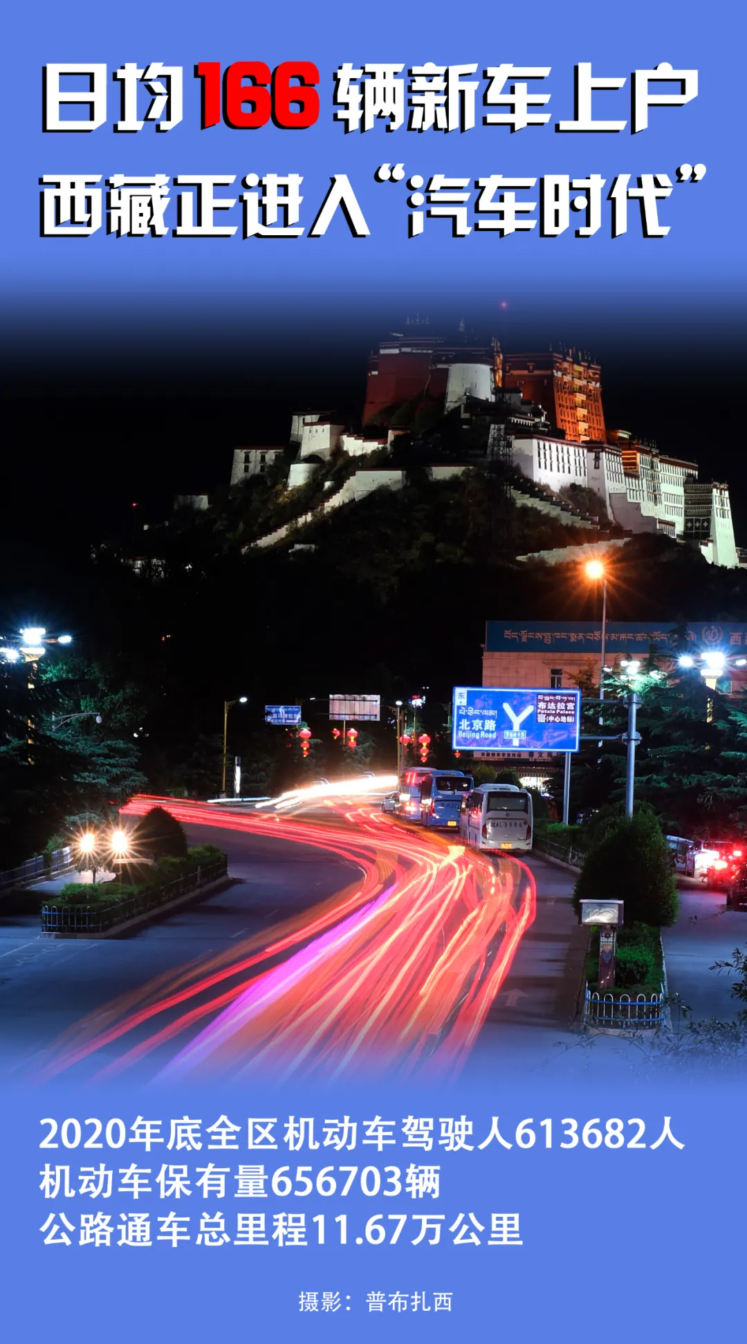 2020年,日均新車上戶166輛;截至當(dāng)年底,西藏機(jī)動車保有量達(dá)到656703輛,機(jī)動車駕駛?cè)诉_(dá)613682人。西藏公路通車總里程達(dá)到11.67萬公里。按照目前拉薩戶籍人口55萬人計(jì)算,基本上平均每兩個(gè)人就擁有一輛車。