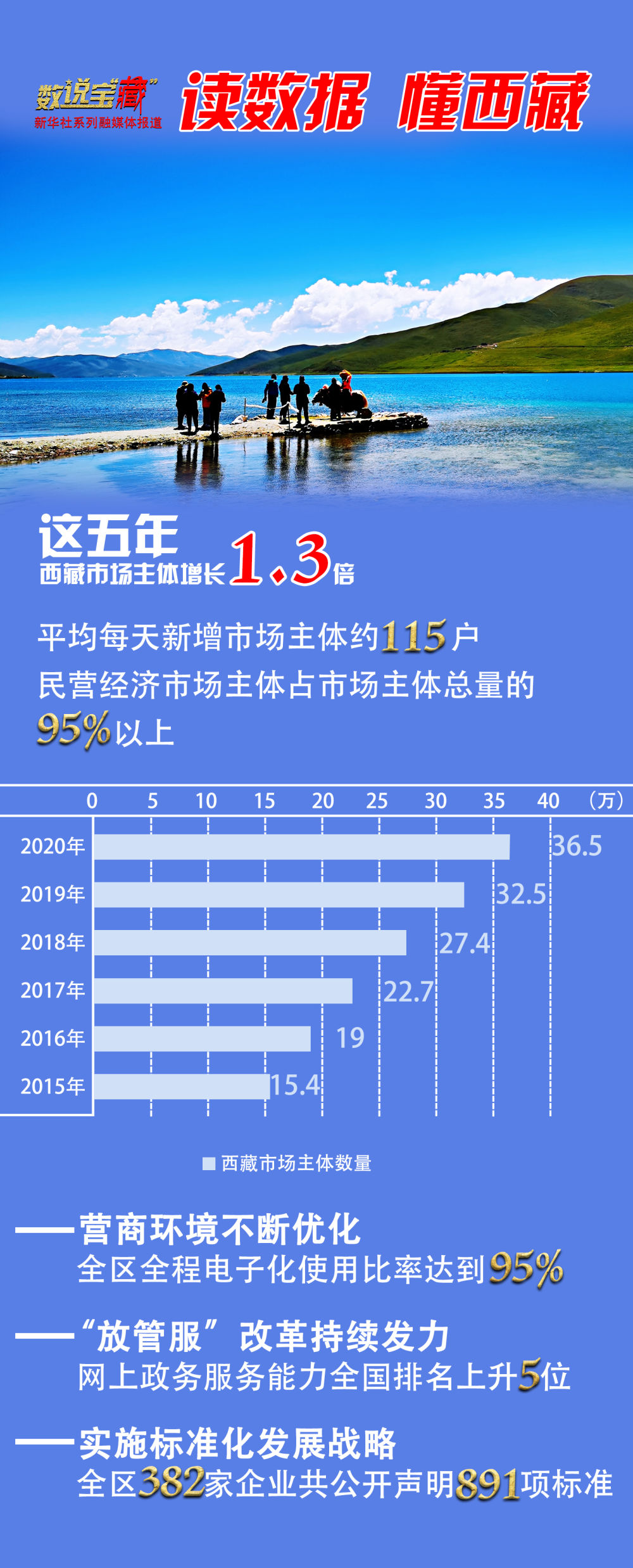 “十三五”期間,西藏市場(chǎng)主體活力不斷被激發(fā),群眾創(chuàng)業(yè)辦事便利度、滿(mǎn)意度顯著提升。西藏自治區(qū)政府統(tǒng)計(jì)數(shù)據(jù)顯示,目前西藏市場(chǎng)主體數(shù)量已達(dá)36.5萬(wàn)戶(hù),較“十二五”末增長(zhǎng)了1.3倍,5年來(lái)平均每天新增市場(chǎng)主體約115戶(hù)。