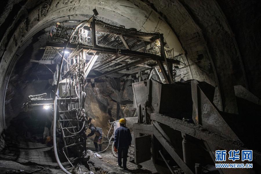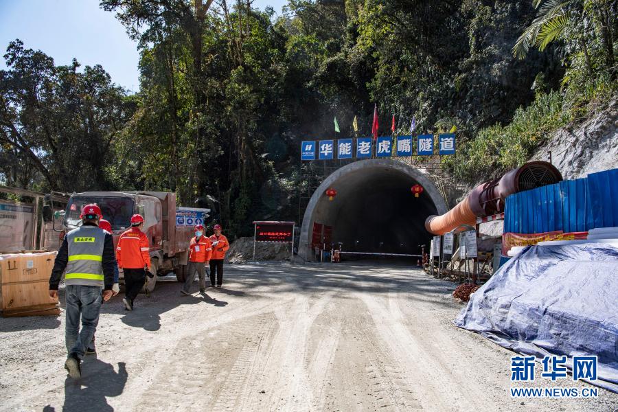 這是施工中的派墨公路老虎嘴隧道出口端(2月10日攝)。新華社記者 孫非 攝