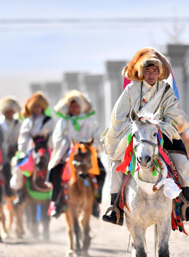 2月12日,拉薩市當雄縣牧民騎馬去鄰村拜年。 新華社記者 覺果 攝當天是藏歷鐵牛新年和農(nóng)歷春節(jié)。雙節(jié)共慶,帶來的是雙倍的歡樂,西藏各地群眾以不同形式慶祝新年,祈愿美好生活。