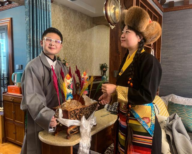 2月12日拍攝的著盛裝的拉薩市當雄縣藏族牧民。新華社記者 覺果 攝