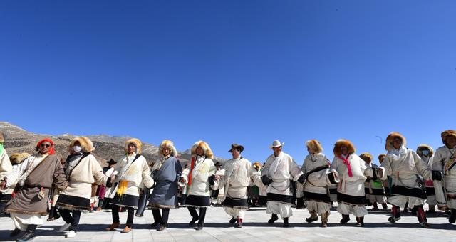2月12日,拉薩市當雄縣牧民跳起鍋莊舞。新華社記者 覺果 攝