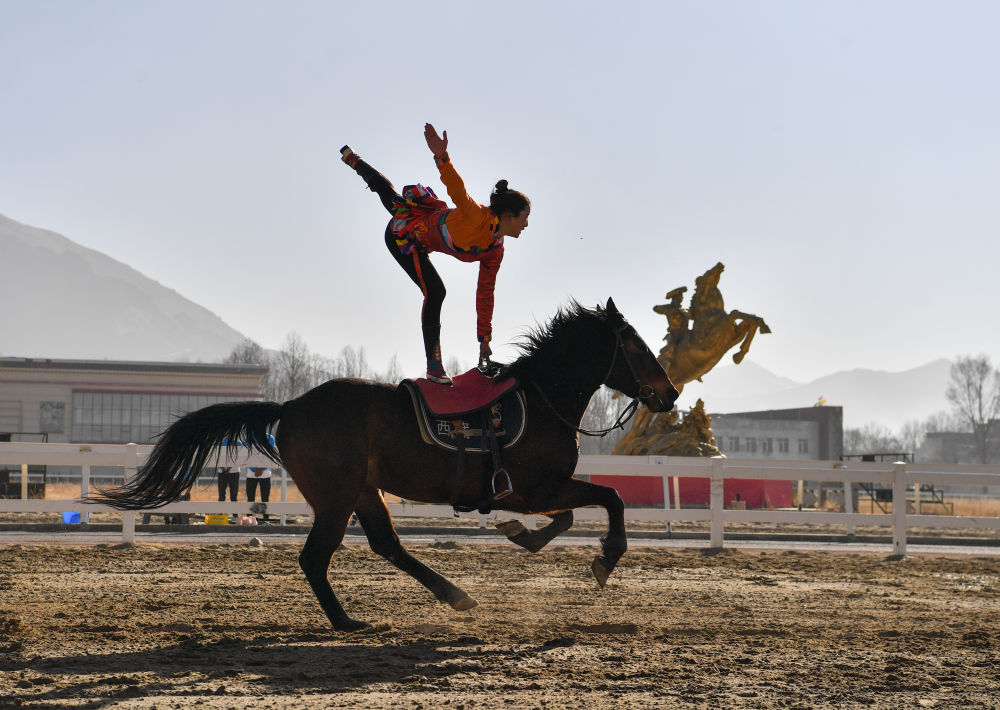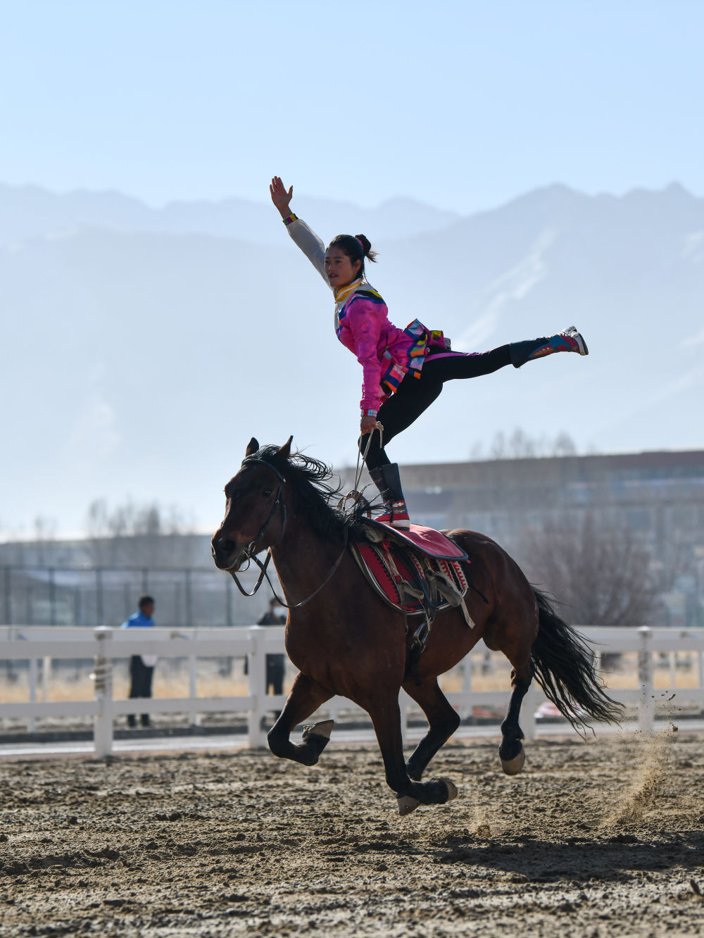 2月14日,為慶祝藏歷新年,西藏自治區(qū)體育局組織自治區(qū)馬術(shù)隊(duì)在拉薩北郊賽馬場(chǎng)舉行馬術(shù)表演。因疫情防控需要,這次表演被搬到“線(xiàn)上”,通過(guò)網(wǎng)絡(luò)直播發(fā)布。
