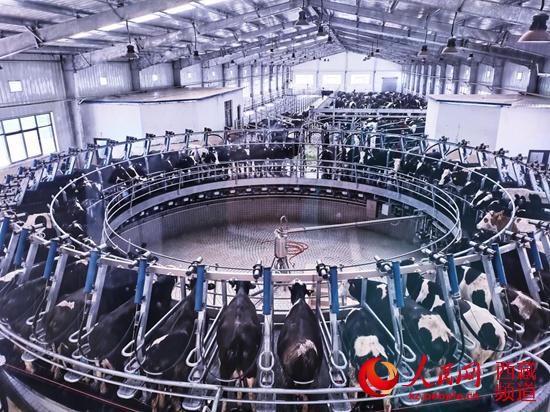 全自動轉(zhuǎn)盤式擠奶車間。李海霞 攝