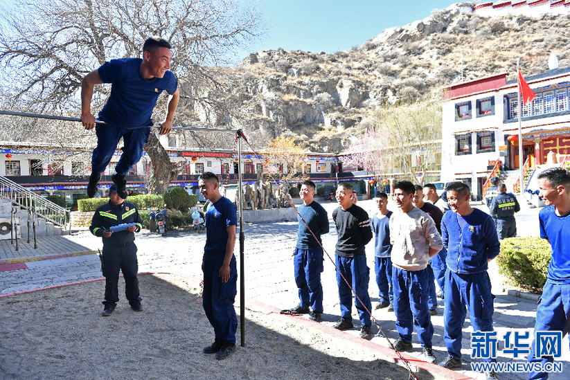布達(dá)拉宮消防救援大隊(duì)隊(duì)員開展例行體能測(cè)試(3月4日攝)。新華社記者 孫瑞博 攝