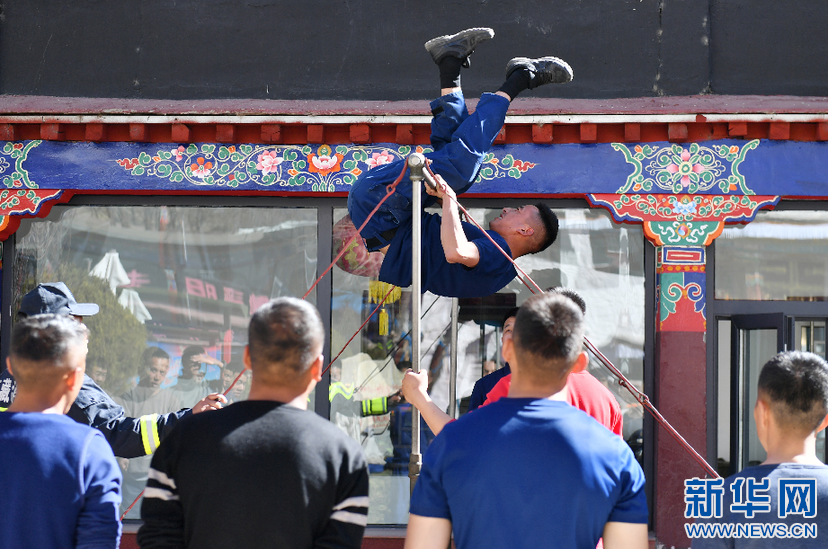 布達(dá)拉宮消防救援大隊(duì)隊(duì)員進(jìn)行例行體能測(cè)試(3月4日攝)。新華社記者 孫瑞博 攝
