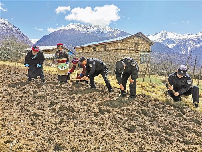 正值春耕時(shí)節(jié),山南市錯(cuò)那縣吉布鄉(xiāng)到處一派熱火朝天的農(nóng)忙景象。為確保轄區(qū)春耕生產(chǎn)順利進(jìn)行,山南邊境管理支隊(duì)吉布邊境派出所移民管理警察走進(jìn)田間地頭,幫助缺少勞動(dòng)力的農(nóng)戶春耕。
