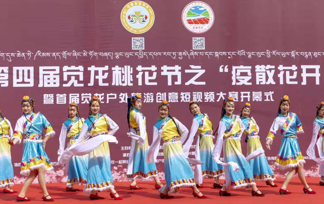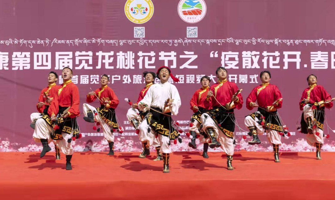 4月3日活動正式開幕,開幕式上,昌都市人大常委會主任、黨組書記,芒康縣委書記齊應(yīng)海宣布活動開幕,并為納西民族鄉(xiāng)覺龍村頒授了《全國鄉(xiāng)村旅游重點村》獎牌。昌都市旅游發(fā)展局副局長蔡慶,芒康縣委常委、常務(wù)副縣長杜晨光出席開幕式并致辭。麗江藝術(shù)團(tuán)和芒康藝術(shù)團(tuán)帶來的歌舞《吉祥謠》《福滿昌都》《崗拉梅朵》等精彩紛呈的表演為在場觀眾帶來了一場歌舞盛宴。開幕式后,游客們循著山谷中遍野的桃花,漫步山野田間,記錄著每一個美麗的瞬間。出了覺龍溝,大家在扎古西大峽谷參觀了文成公主廟和崗達(dá)寺,傍晚在云曲莊園大家圍著篝火跳起了歡快的舞蹈。