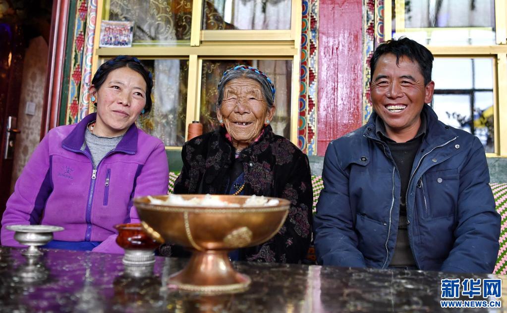 邊巴倉決和孫子、孫媳在一起(3月19日攝)。新華社記者 張汝鋒 攝