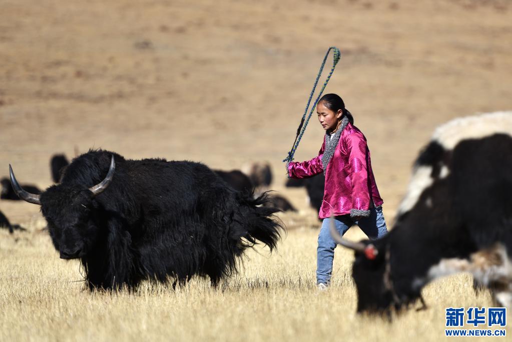 多吉卓瑪在放牛(3月10日攝)。新華社記者 孫瑞博 攝