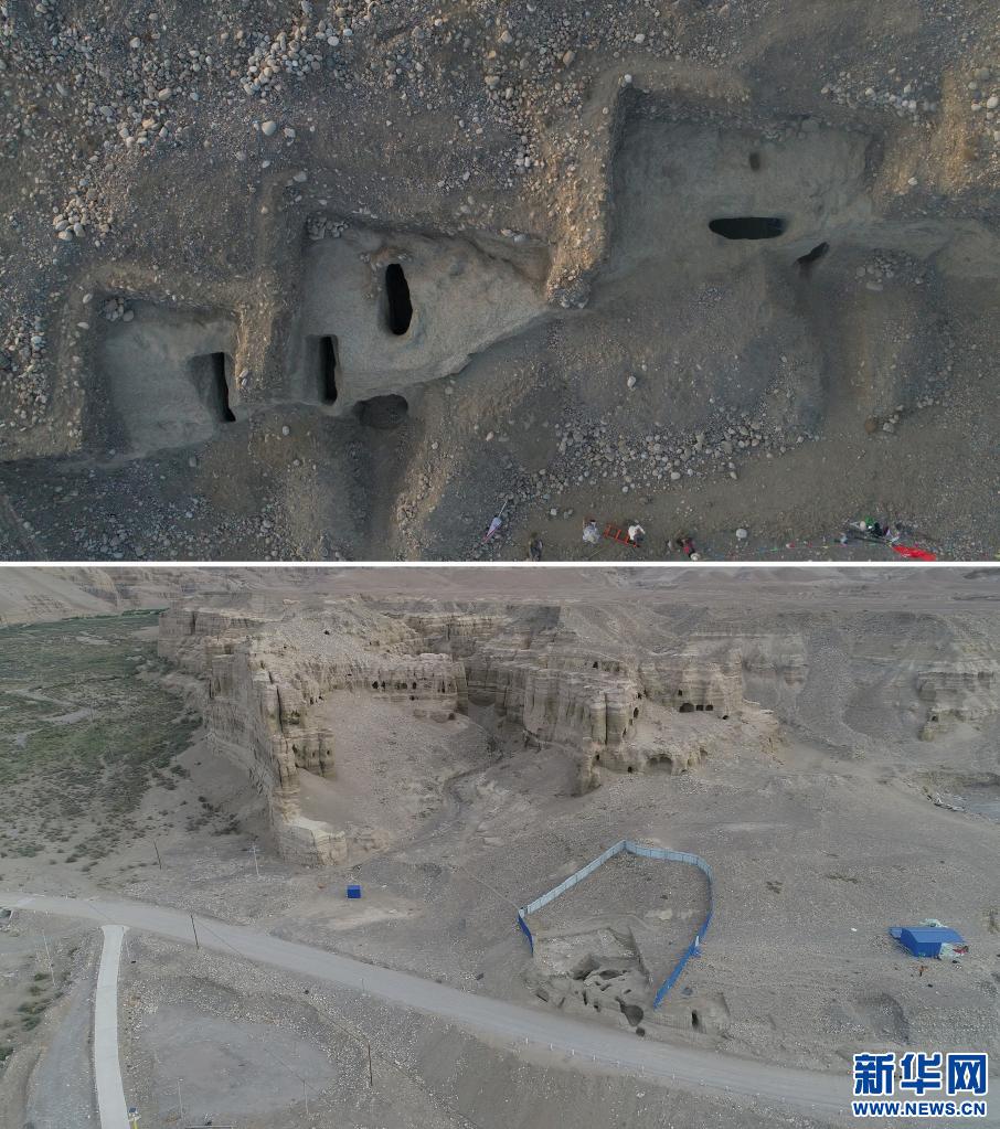 拼版照片:上圖為西藏札達(dá)桑達(dá)隆果墓地西區(qū)航拍,下圖為西藏札達(dá)桑達(dá)隆果墓地東區(qū)航拍。(資料照片)新華社發(fā)
