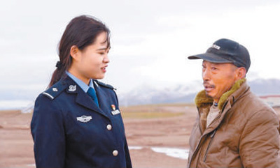 畢業(yè)后,潘瑤來(lái)到了雙湖縣公安局工作。在這里,她看到了從未見(jiàn)過(guò)的景色,也克服了從未經(jīng)歷過(guò)的艱苦。高原的壯闊景色讓她留戀:在一眼看不到盡頭的公路上開(kāi)車,公路兩旁是成群的牦牛、藏羚羊以及正在奔跑的叫不上名字的野生動(dòng)物。