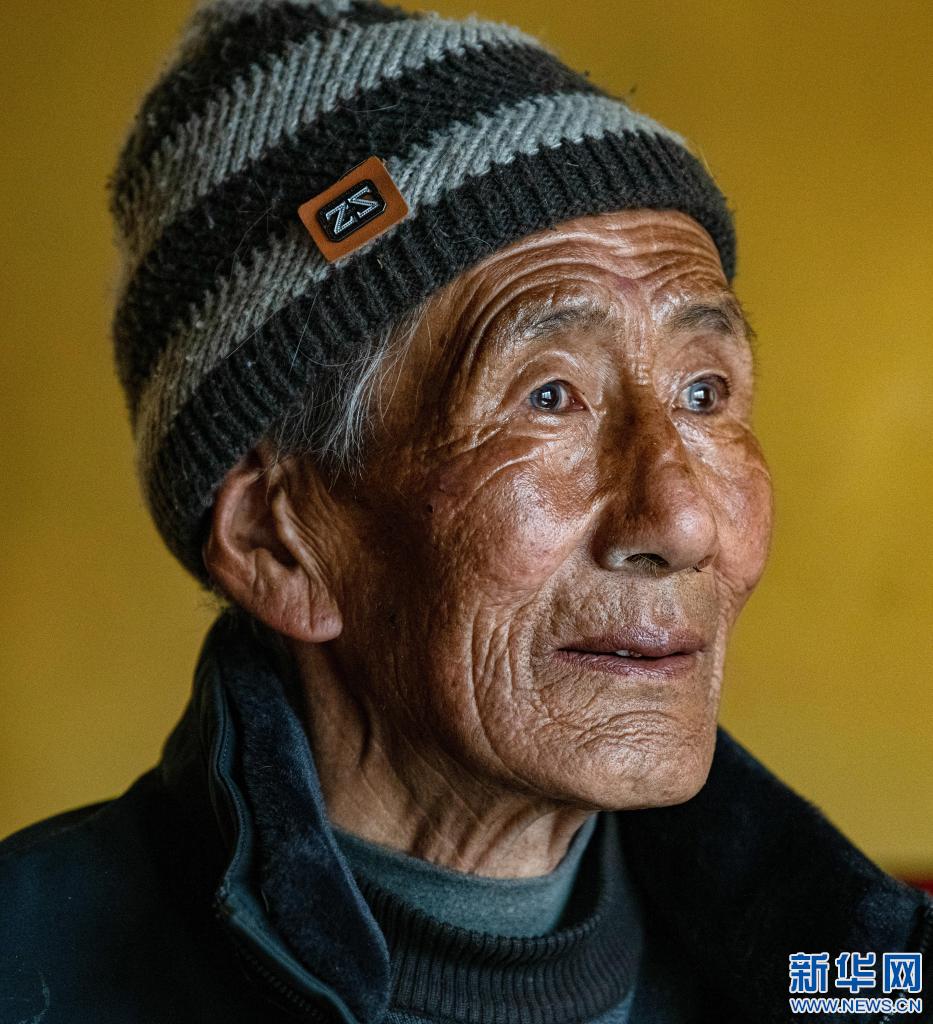 這是在拉薩市當雄縣寧中鄉(xiāng)麥靈村拍攝的次仁老人肖像(4月16日攝)。新華社記者 孫瑞博 攝