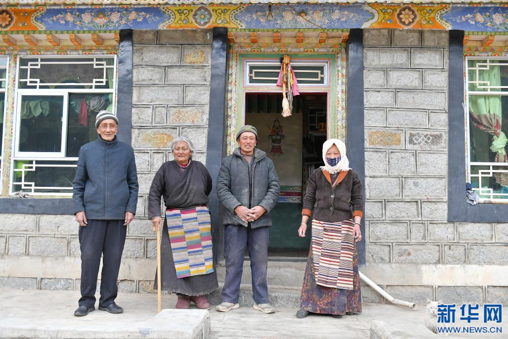 次仁老人(左一)在拉薩市當雄縣寧中鄉(xiāng)麥靈村的家里和家人合影(4月16日攝)。新華社記者 孫瑞博 攝