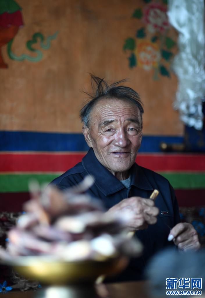 西藏拉薩市當雄縣納措鄉(xiāng)甲嘎村的旦達老人的肖像(4月16日攝)。新華社記者 孫瑞博 攝