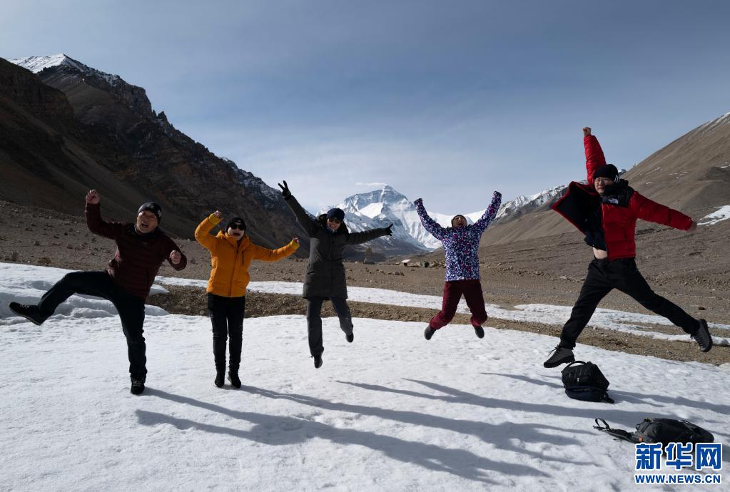 游客在珠峰景區(qū)內留影(2020年5月5日攝)。新華社記者 普布扎西 攝