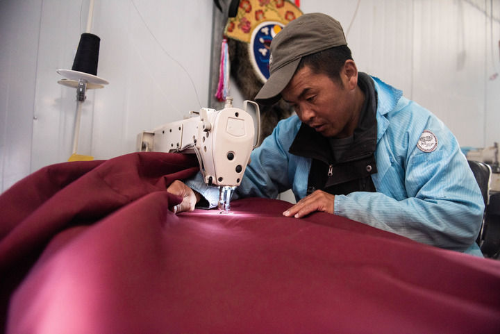 西藏古傳民族手工有限公司的員工正在進行縫紉工作。 新華社記者 金一清 攝