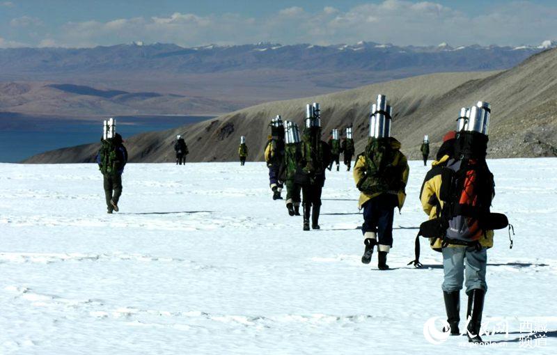 在納木那尼峰運送冰芯。圖片由中科院青藏所提供