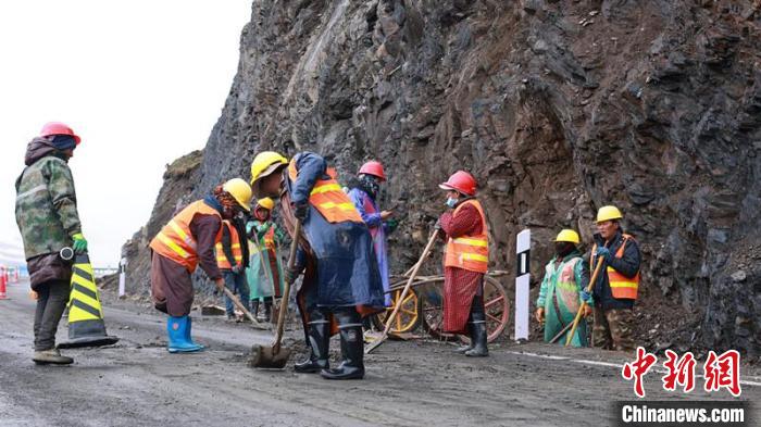 圖為5月28日,曲玉道班組織民工清理道路。日當養(yǎng)護段供圖