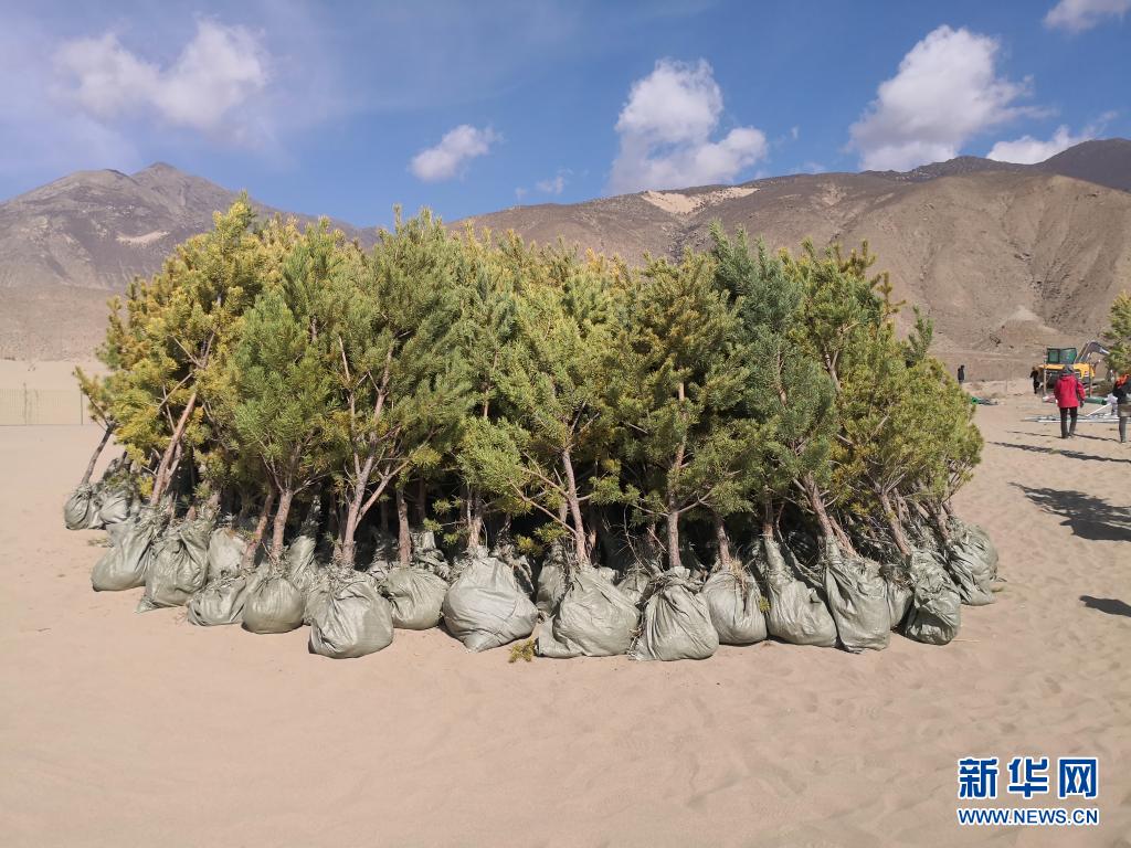 山南市江北“萬(wàn)人萬(wàn)畝”義務(wù)植樹造林所用的樹苗(2021年3月7日攝)。新華社發(fā)(資料照片)